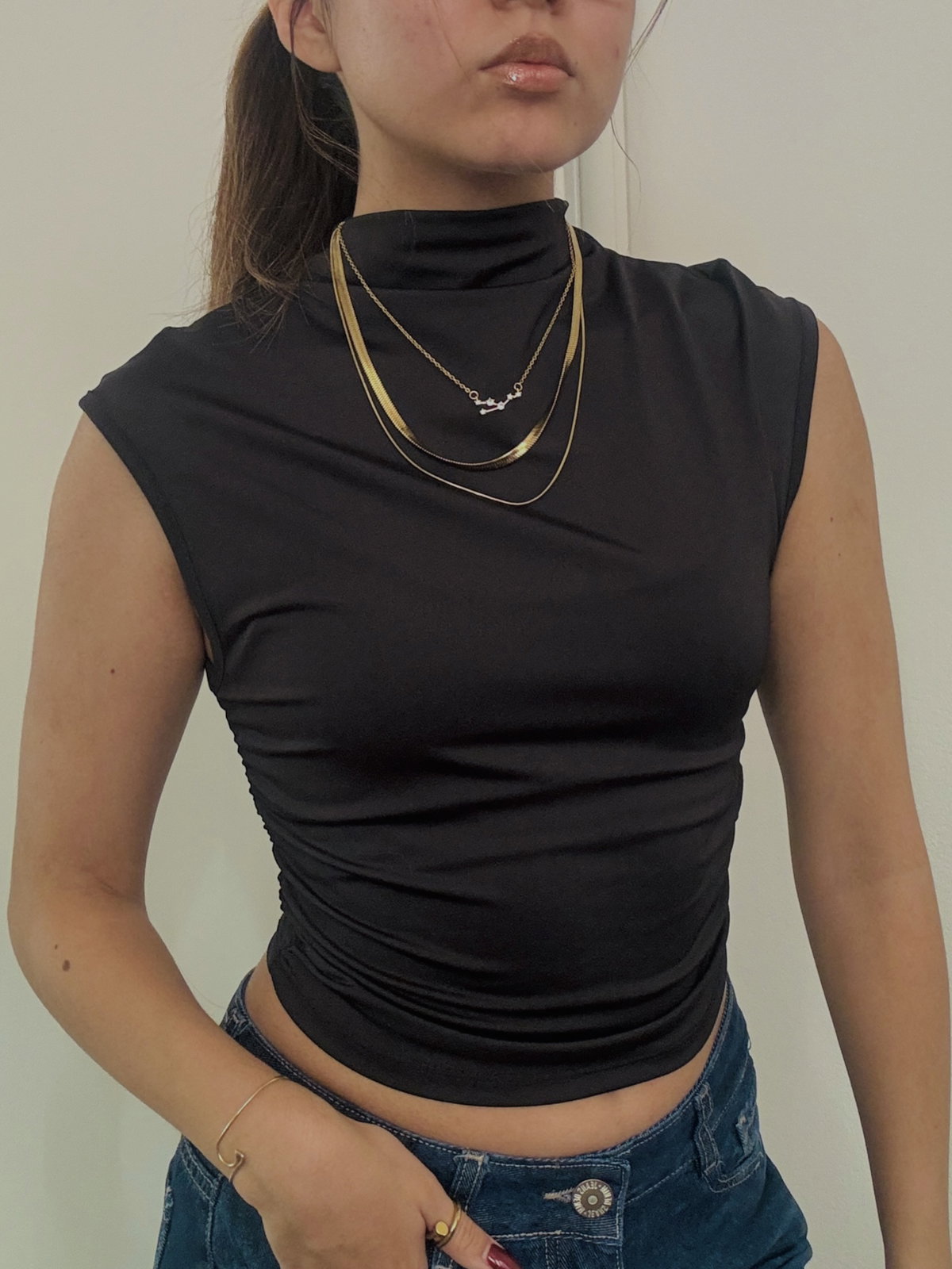 el top midnight es super sutil, con manga japonesa que lo hace más atractivo. Con frunces al costado y elaborado de microfibra que favorece la elasticidad. (no incluye collar)