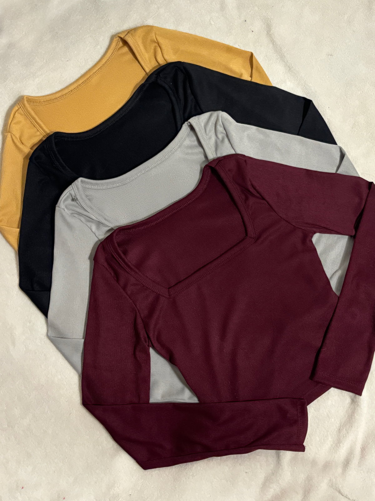 viene en 4 colores, confeccionado con tela morley. Destaca su escote cuadrado, ideal para combinar con accesorios.