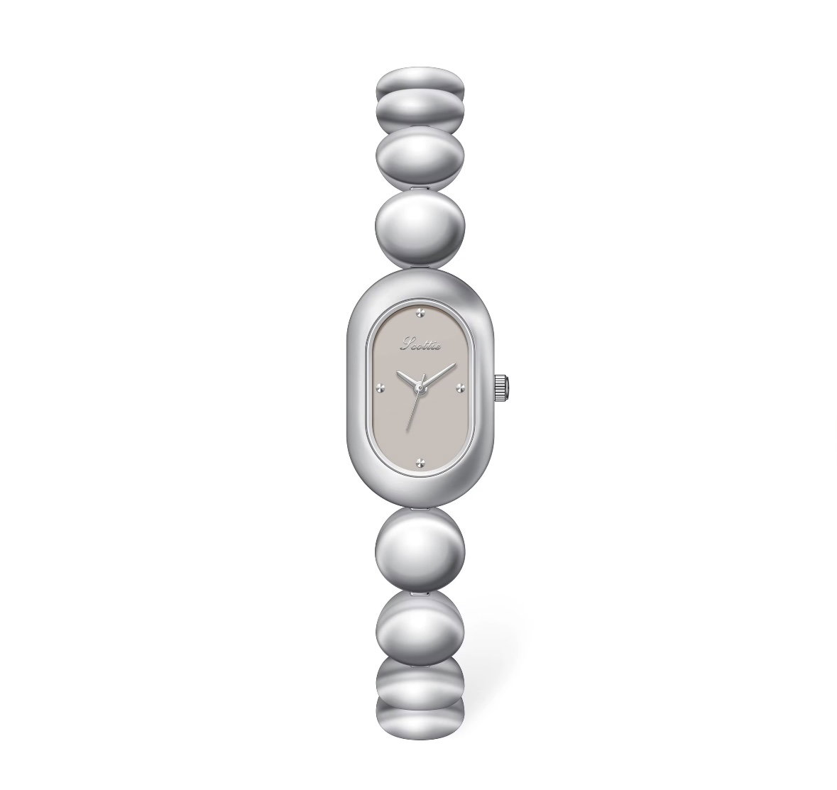 De lujo en acero inoxidable importado, con un diseño fluido y brillante que combina elegancia moderna y encanto atemporal. Su acabado plateado espejo y esfera minimalista lo convierten en una joya que trasciende el tiempo.