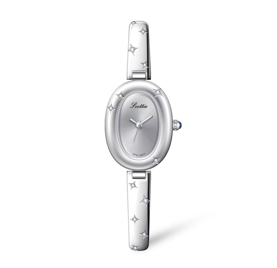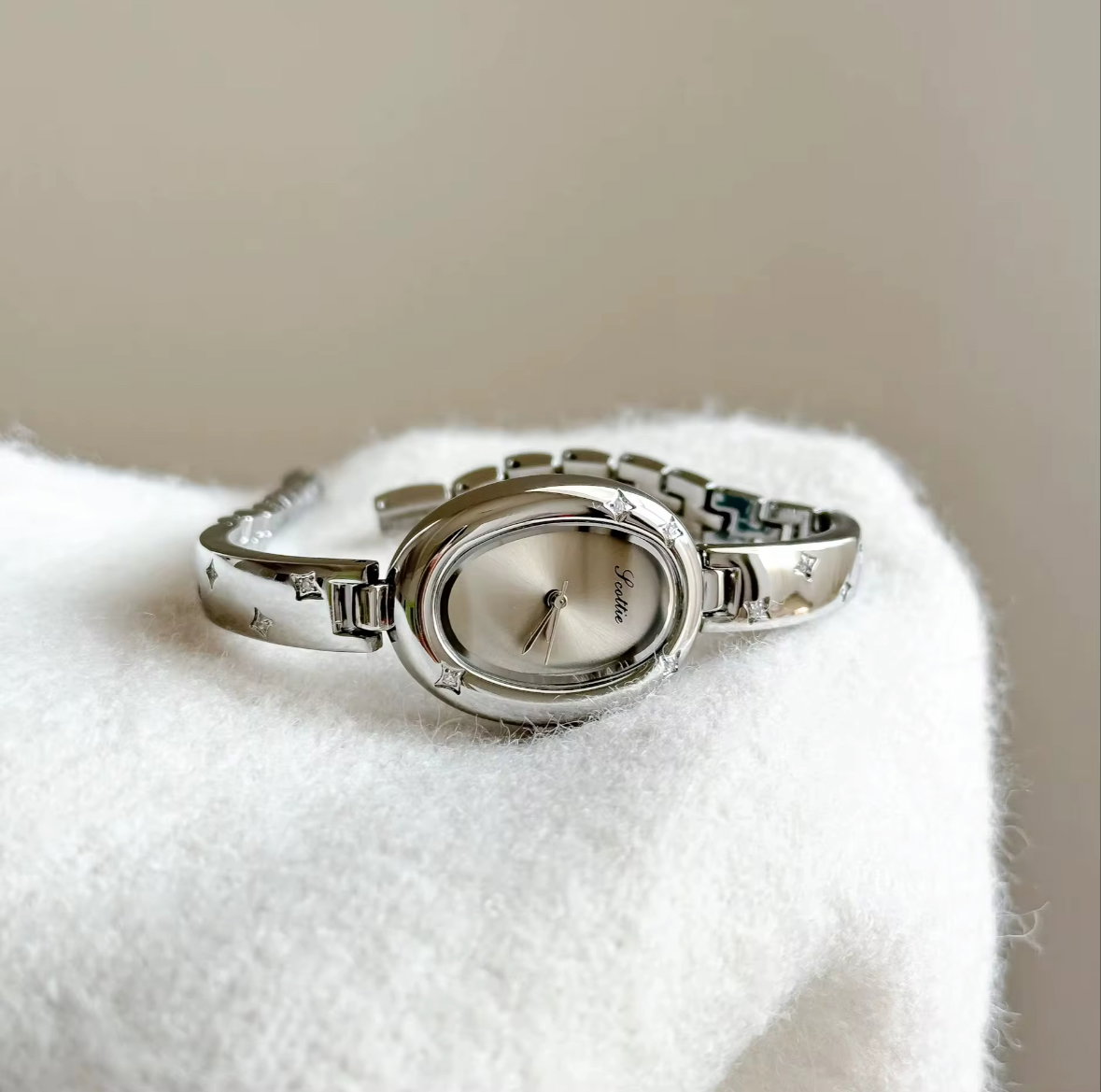 Minimalismo celestial en su máxima expresión. Este reloj plateado refleja pureza, calma y una luz sutil que emana desde su interior. Su diseño delicado, adornado con destellos estrellados, evoca la serenidad de una noche clara y el brillo de la luna sobre el metal frío. Diseñado en acero inoxidable importado.