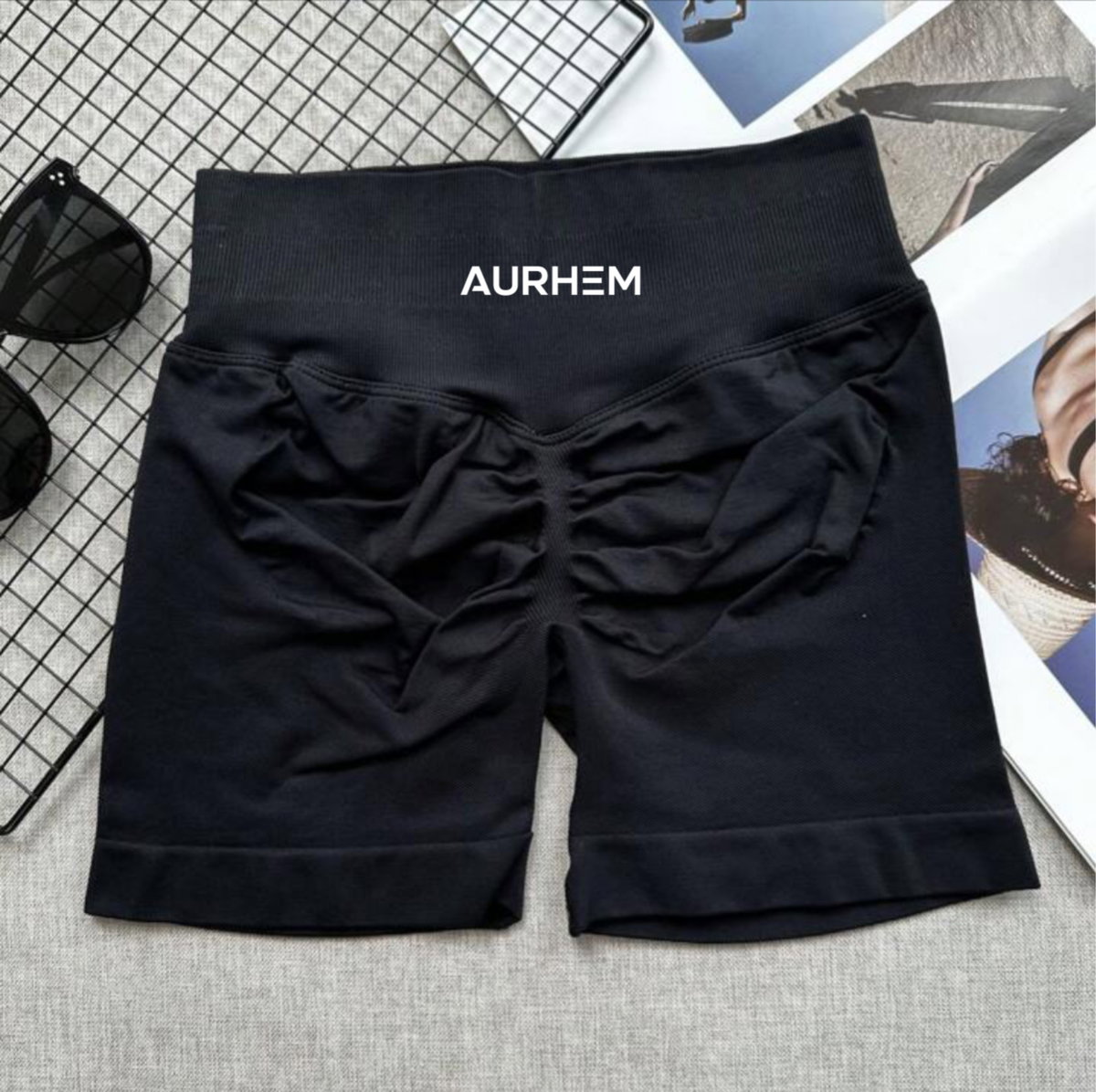 Short deportivo confeccionado en una tela de compresión suave. Su diseño con frunce en la parte trasera realza la silueta de manera natural, ofreciendo comodidad y ajuste ergonómico. La pretina ancha brinda sujeción firme sin apretar, ideal para entrenamientos o uso diario.