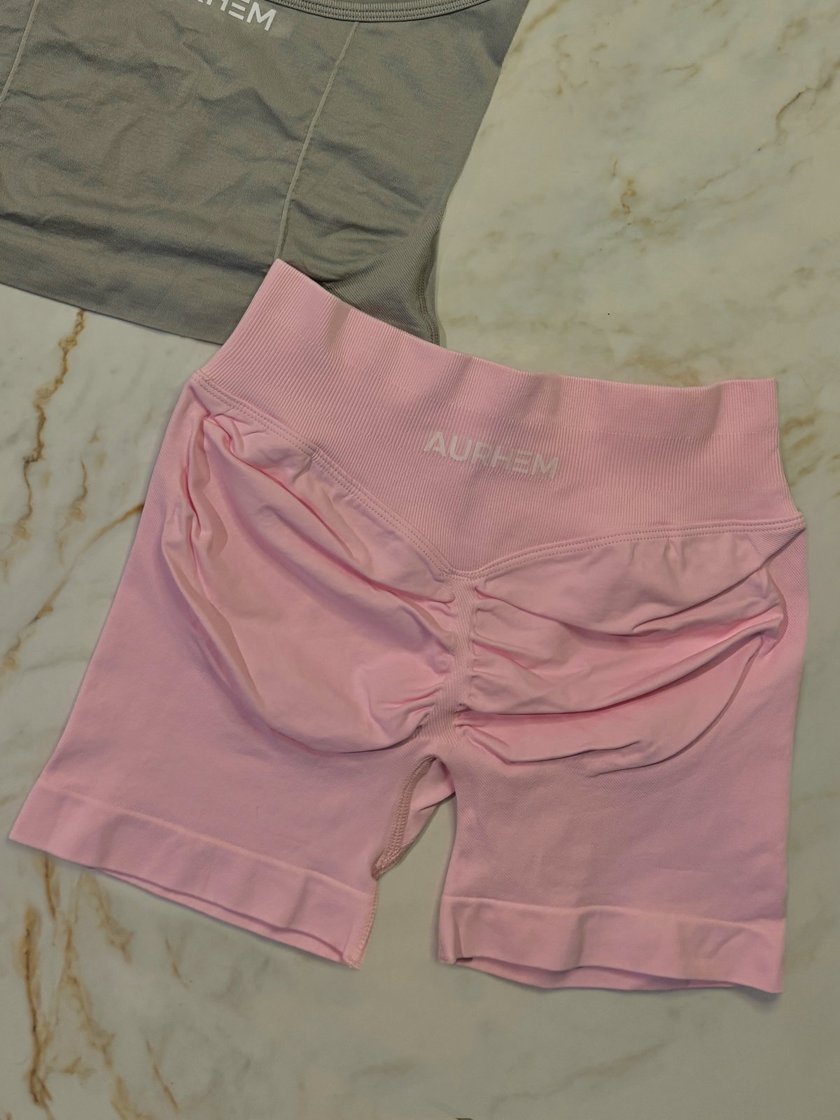 Short deportivo confeccionado en una tela de compresión suave. Su diseño con frunce en la parte trasera realza la silueta de manera natural, ofreciendo comodidad y ajuste ergonómico. La pretina ancha brinda sujeción firme sin apretar, ideal para entrenamientos o uso diario.