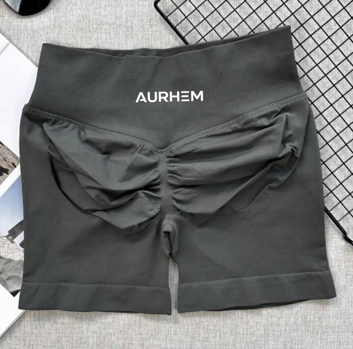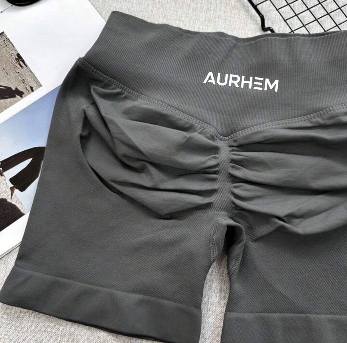 Short deportivo confeccionado en una tela de compresión suave. Su diseño con frunce en la parte trasera realza la silueta de manera natural, ofreciendo comodidad y ajuste ergonómico. La pretina ancha brinda sujeción firme sin apretar, ideal para entrenamientos o uso diario.